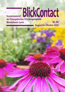 BlickContact 80 Posted on 4. August 2025by MichaelFlickCategories:Gemeindebrief, Startseite Bildquellen: BlickContact 80-1: Andrea Deutz